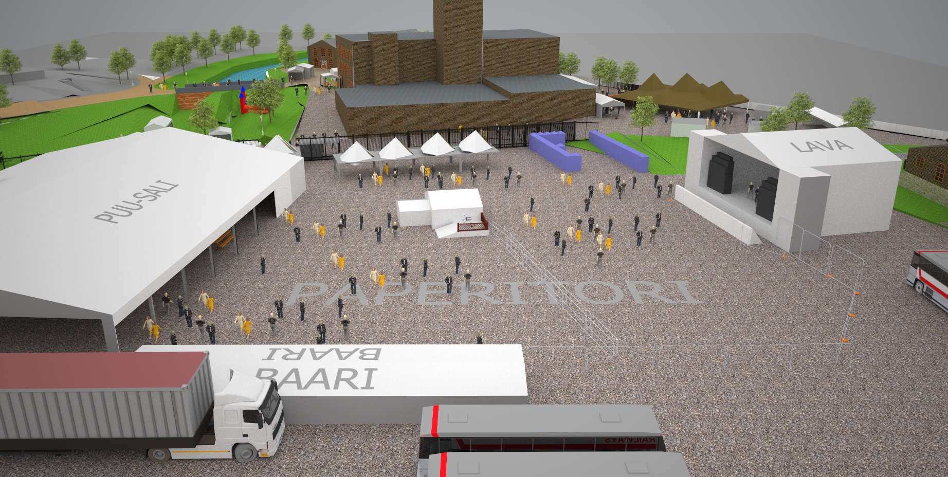 Esimerkki malli 3D Pihasta. Kohde ollut Työväen Musiikkitapahtuma vuonna 2017. Mallin katseluun sinun tarvitsee asentaa katselu ohjelma tästä. Sen jälkeen mallin voit ladata klikkaamalla oikealla olevaa kuvaa.